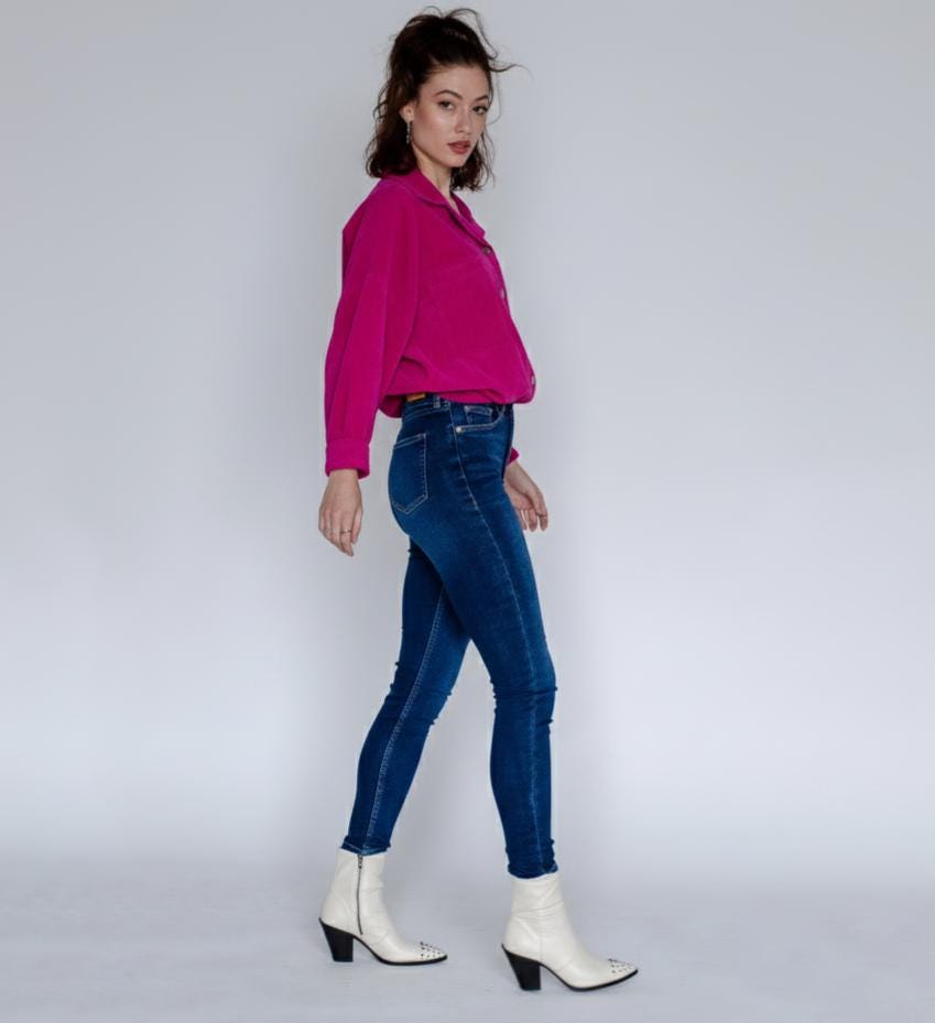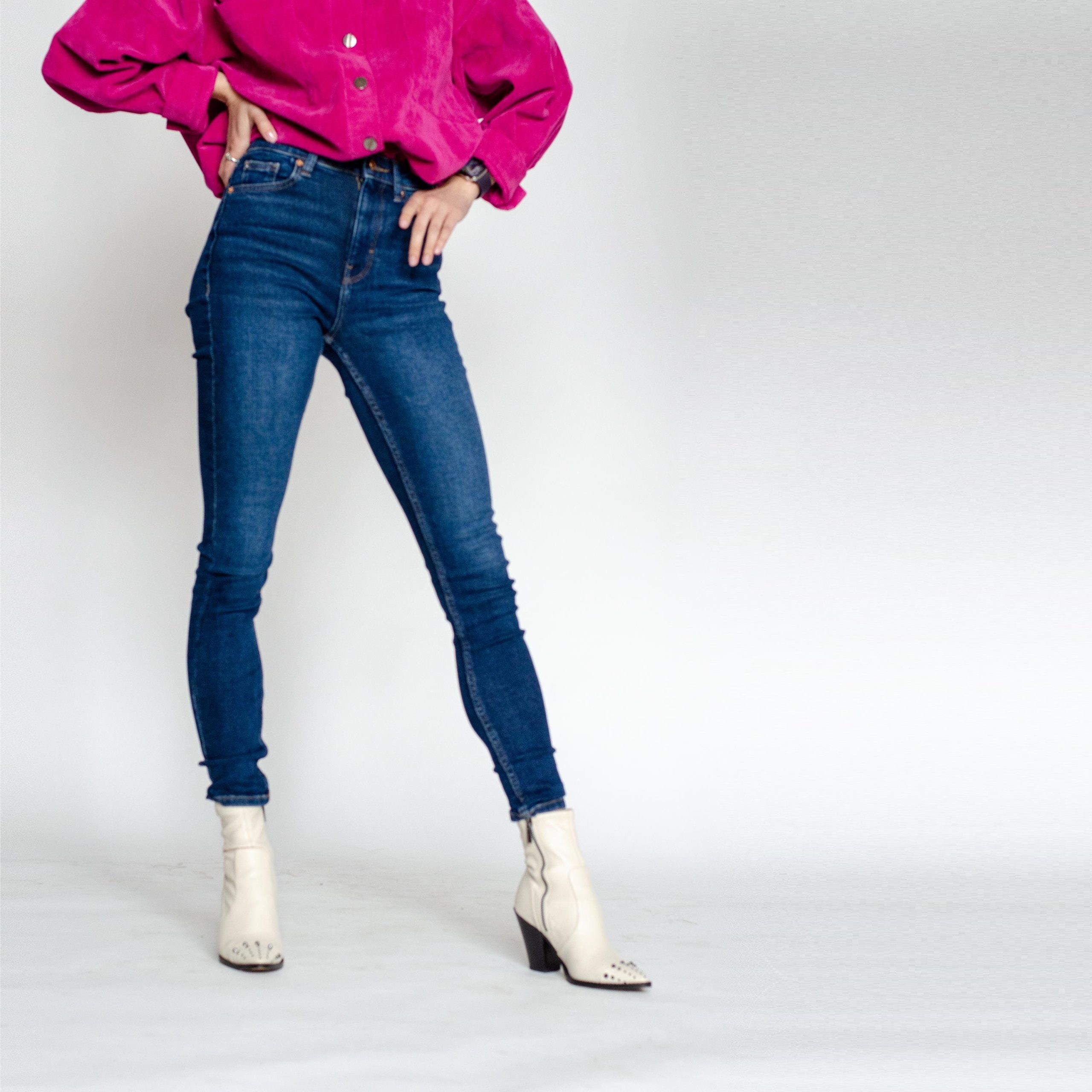 Dark Wash High Waisted Skinny Jeans: Stretch Denim