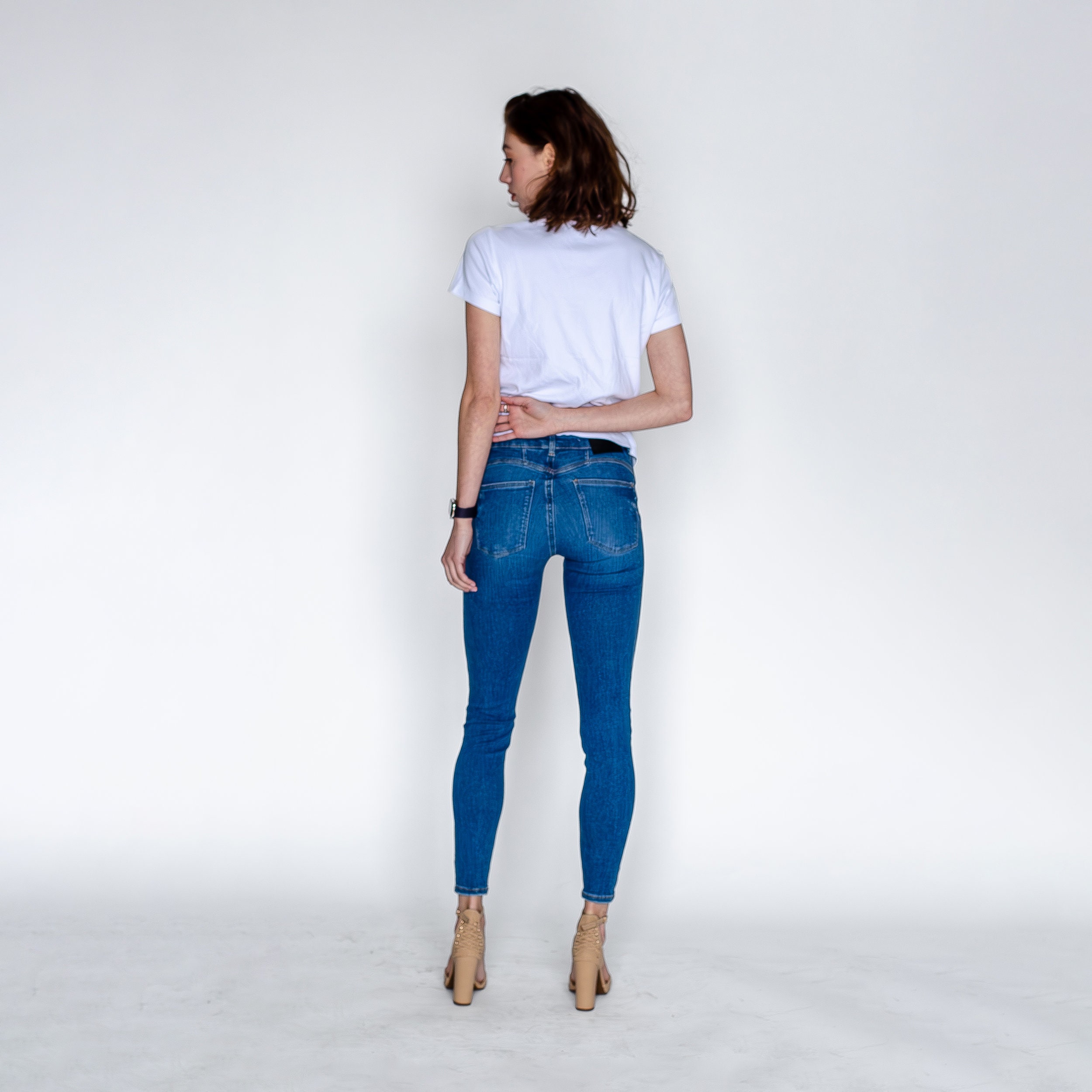 Medium Wash Denim: A versatile blue wash that is easy to dress up or down and a staple in any wardrobe.