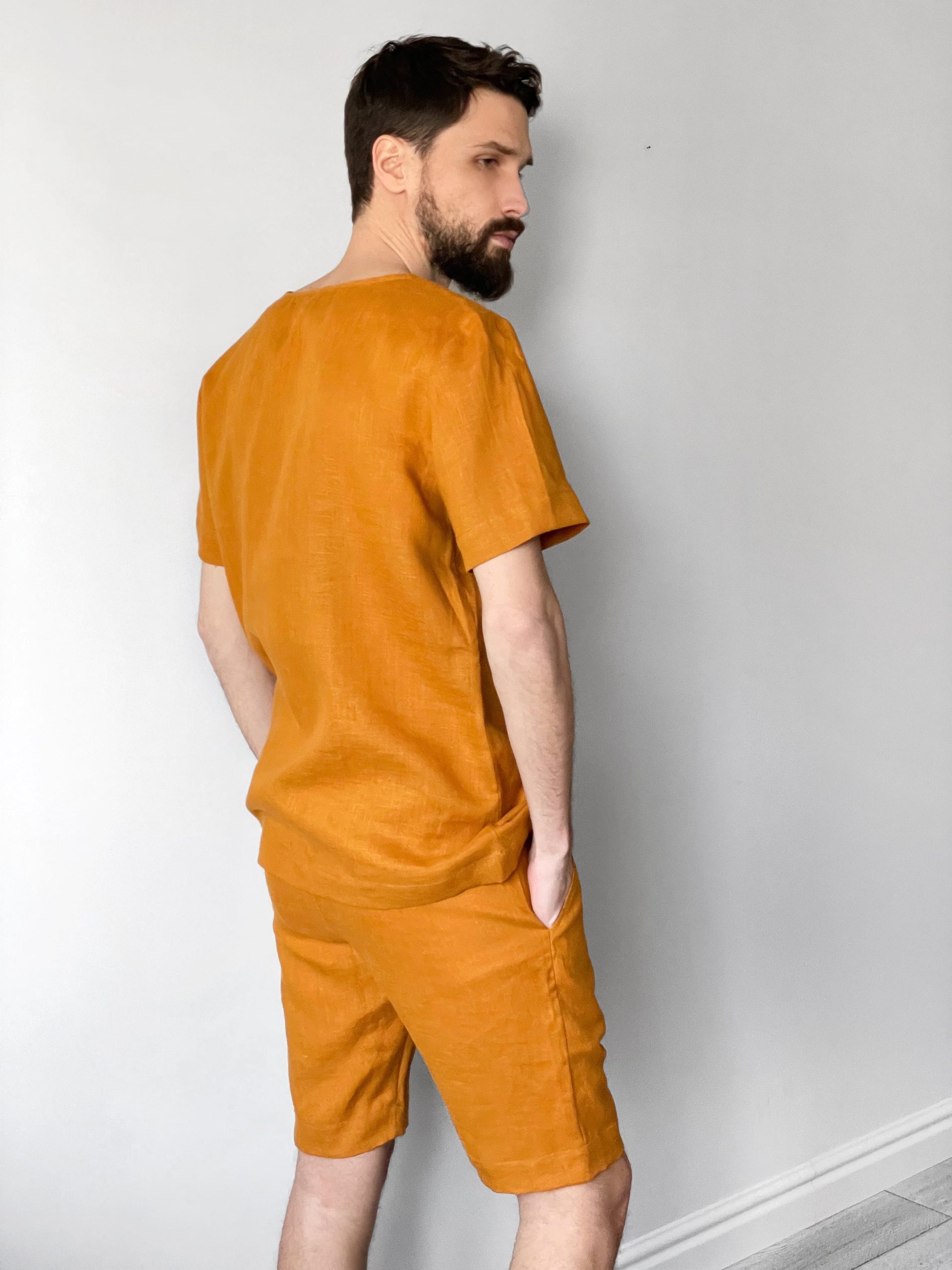 Comfortable and stylish men’s t-shirt. Natural linen. The fabric is natural and takes the body shape, over time it becomes softer. Men’s Linen T-Shirt makes a luxurious and functional gift for that special man in your life.